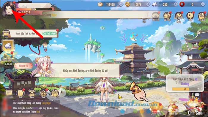 Bước 1: Mở Hộ Giá Chủ Nhân trên thiết bị và nhấn vào avatar nhân vật ở góc trên cùng bên trái.