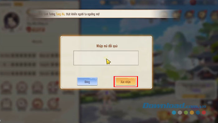 Bước 3: Sau đó, nhập chính xác hoặc sao chép mã code được cung cấp phía trên vào ô trống. Cuối cùng, nhấn nút Xác nhận để dùng code và thu thập phần quà tương ứng.