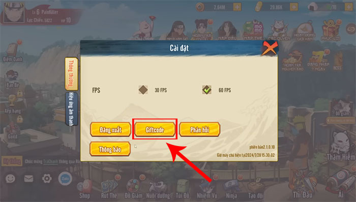 Thao tác nhập giftcode Hỏa Chí Shinobi quy đổi phần thưởng rất đơn giản, được thực hiện trực tiếp trong ứng dụng game, với các bước cụ thể như sau: