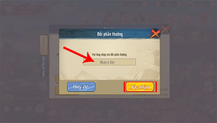 Bước 3: Nhập chính xác hoặc sao chép mã code được cung cấp ở phía trên vào ô trống. Cuối cùng, nhấn nút Xác nhận để dùng code và thu thập phần thưởng tương ứng.