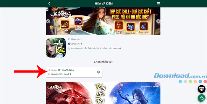 Bước 2: Chọn server và nhân vật trong Hoa Và Kiếm mà mọi người muốn nhận thưởng.