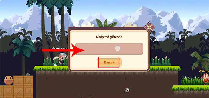 Bước 2: Nhập chính xác hoặc sao chép mã code được cung cấp phía trên và dán vào ô trống, sau đó nhấn Đồng ý để dùng code nhận thưởng ngay lập tức.