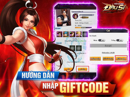 Bước 2: Nhấn vào nút Cài đặt trong cửa sổ Thông tin Đấu sĩ và chọn Giftcode.