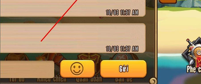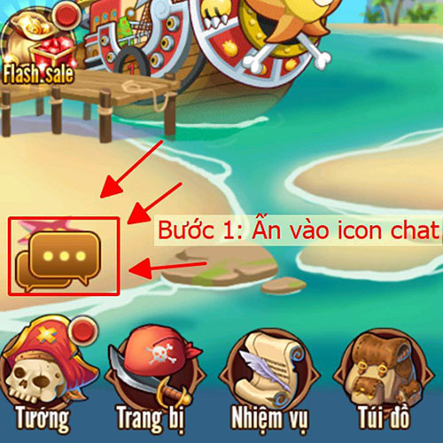 Bước 1: Mở Huyền Thoại Đảo Kho Báu trên thiết bị và nhấn vào biểu tượng chat ở góc dưới bên trái giao diện chính.