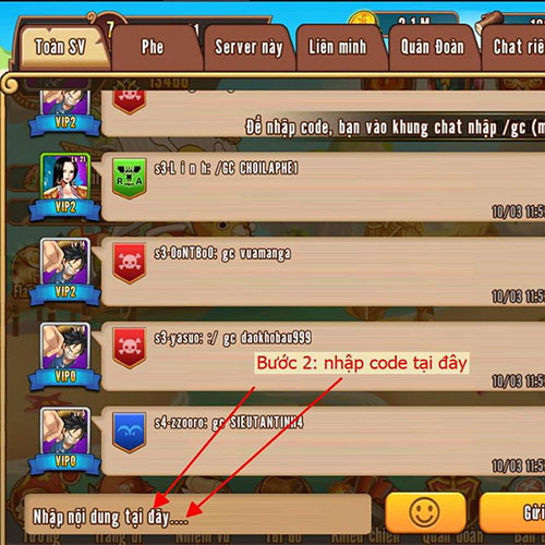 Bước 2: Nhập mã code theo cú pháp /gc mã_code vào hộp nhập văn bản. Ví dụ: /gc BOAXINHH