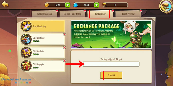 Bước 4: Nhập chính xác hoặc sao chép các mã code được cung cấp ở phía trên vào ô trống và nhấn nút Trao đổi.