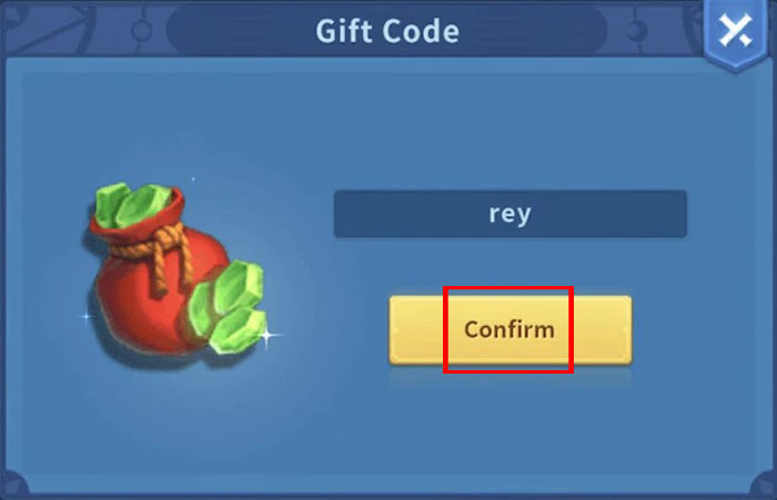 Bước 5: Nhập chính xác hoặc sao chép mã code vào ô trống. Sau đó, nhấn nút Confirm để xác nhận đổi mã và nhận phần quà ngay lập tức.