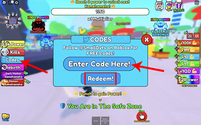 Thao tác nhập code Kamehameha Simulator [🔥UPDATE] rất đơn giản, tương tự như các trò chơi Roblox khác, với các bước cụ thể như sau: