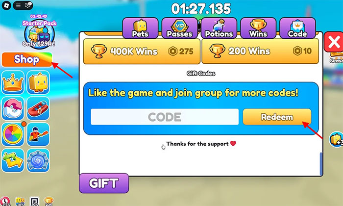 Thao tác nhập code [NEW] Kayak Racing rất đơn giản, tương tự như các game Roblox khác, với các bước cụ thể như sau: