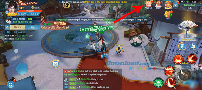 Bước 1: Mở ứng dụng trò chơi Kiếm Khách Phong Lăng trên thiết bị và nhấn vào biểu tượng hộp quà Phúc Lợi ở góc trên bên phải.