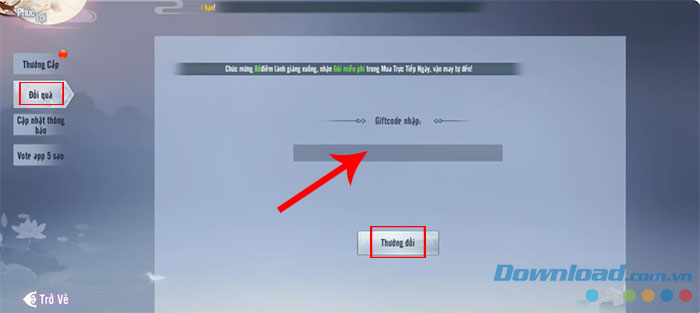 Bước 3: Nhập chính xác mã code được cung cấp ở phía trên hoặc sao chép code rồi dán vào ô trống. Sau đó, bấm Thưởng đổi để xác nhận dùng code.