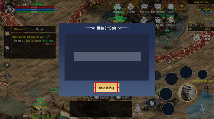 Bước 2: Nhập chính xác hoặc sao chép mã code được cung cấp ở phía trên vào ô trống và nhấn nút Nhận thưởng để thu thập phúc lợi tương ứng.