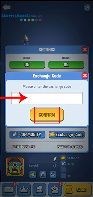 Bước 4: Nhập chính xác hoặc sao chép mã code được cung cấp ở phía trên vào mục Please enter the exchange code và nhấn nút Confirm.