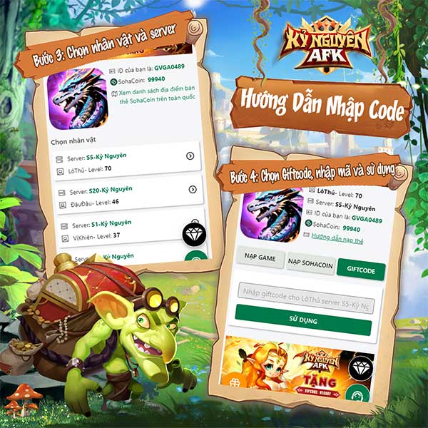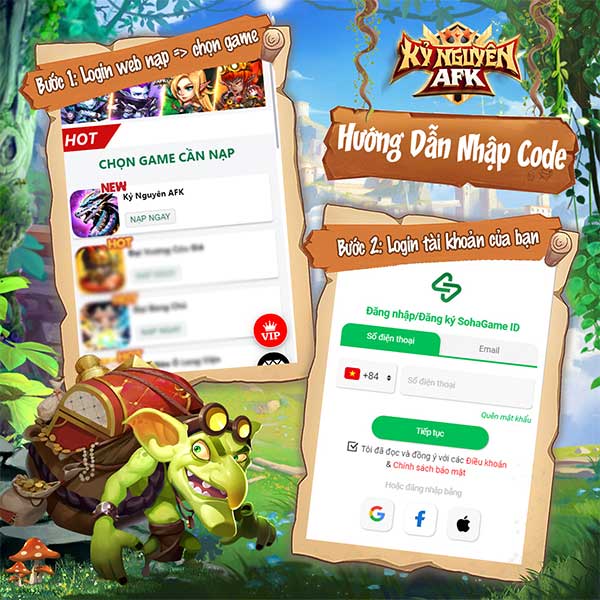 Thao tác nhập code Kỷ Nguyên AFK SohaGame quy đổi phần thưởng rất đơn giản với các bước được thực hiện như sau: