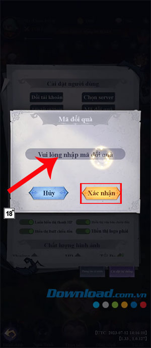 Bước 3: Nhập chính xác hoặc sao chép mã code được cung cấp phía trên và dán vào ô trống. Sau đó, nhấn nút Xác nhận để dùng code và thu thập phần thưởng trực tiếp trong trò chơi.