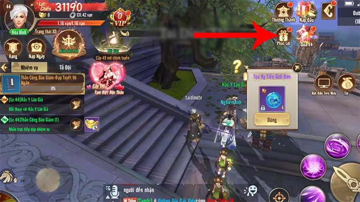 Bước 1: Sau khi mở Lăng Vân Chi Kiếm trên thiết bị, nhấn vào biểu tượng Phúc lợi ở phía trên bên phải giao diện chính.
