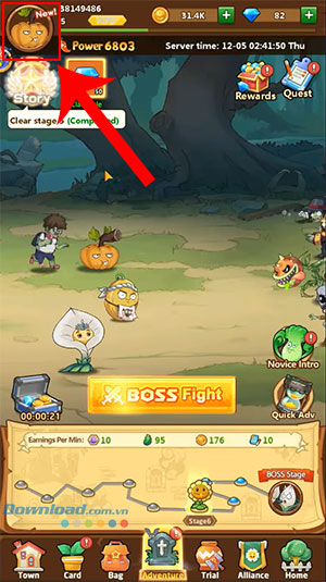 Bước 1: Mở League of Zombies trên thiết bị và nhấn vào avatar ở góc trên cùng bên trái màn hình.