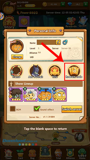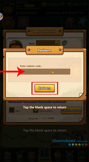 Bước 3: Nhập chính xác hoặc sao chép mã code được cung cấp ở phía trên và dán vào mục Enter redeem code. Sau đó nhấn nút Redeem để xác nhận dùng mã code quy đổi.