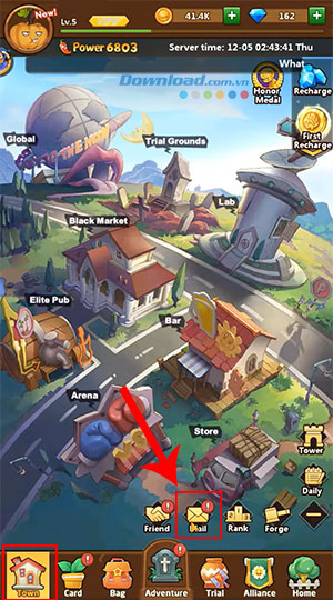 Bước 4: Quay lại giao diện chính của trò chơi, nhấn vào tab Town > Mail.