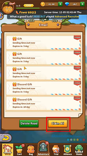 Bước 5: Nhấn nút Claim All để thu thập tất cả phần thưởng.