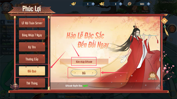 Bước 3: Nhập chính xác hoặc sao chép mã code được cung cấp ở phía trên và dán vào ô trống. Sau đó, bấm nút Đổi để xác nhận dùng code và nhận phần thưởng ngay lập tức.