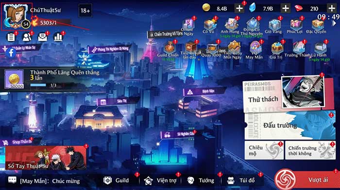 Bước 1: Sau khi mở Lời Nguyền Quỷ Dữ trên thiết bị, nhấn vào biểu tượng avatar nhân vật ở góc trên cùng bên trái.