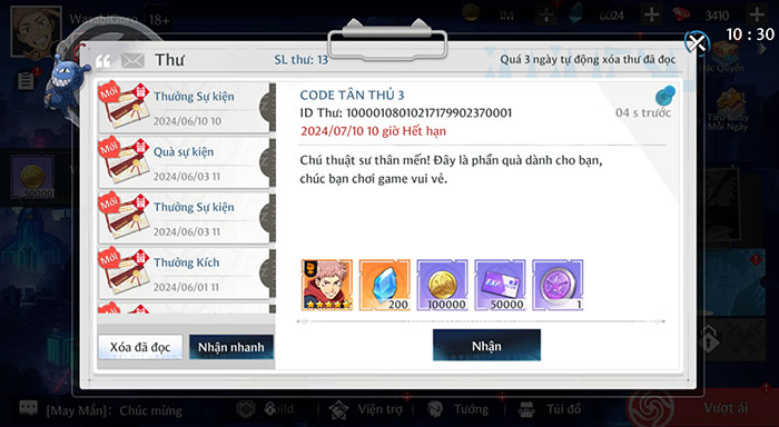 Bước 4: Quay trở lại giao diện chính, mở hộp thư để thu thập phần thưởng tương ứng.