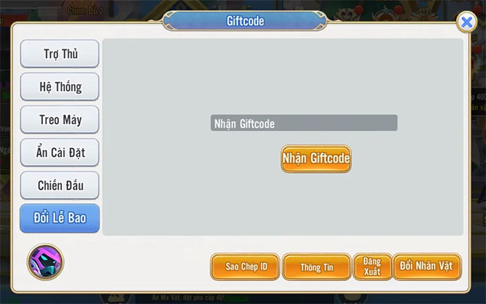Bước 3: Nhập chính xác mã code được cung cấp ở phía trên vào ô trống hoặc sao chép code rồi nhấn nút Nhận Giftcode. Sau đó, mở túi đồ để kiểm tra phần thưởng nhận được.