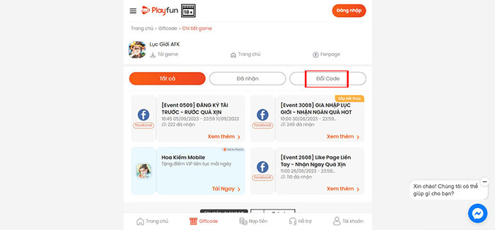 Bước 1: Truy cập trang web https://playfun.vn/giftcode/luc-gioi-afk và đăng nhập vào tài khoản Playfun.