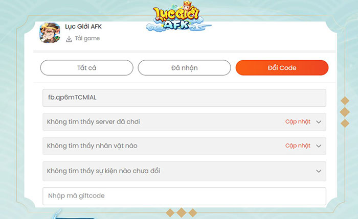 Nhân dịp ra mắt, nhà phát hành Lục Giới AFK - Funtap cung cấp rất nhiều mã code quy đổi vật phẩm giá trị. Bài viết này sẽ hướng dẫn cách nhập code và danh sách code Lục Giới AFK mới nhất, code chung Lục Giới AFK - Funtap, mang đến các phần thưởng hỗ trợ game thủ vượt ải và thống trị lục giới.