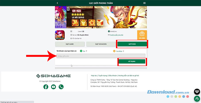 Bước 1: Truy cập trang web https://nap.sohagame.vn/lucgioiphongthan và đăng nhập vào tài khoản SohaGame.