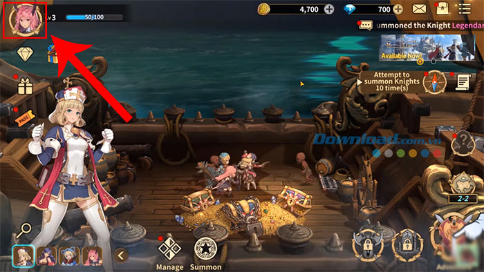Bước 1: Mở Master of Knights - Tactics RPG trên thiết bị và nhấn vào biểu tượng avatar nhân vật ở góc trên cùng bên trái giao diện chính.