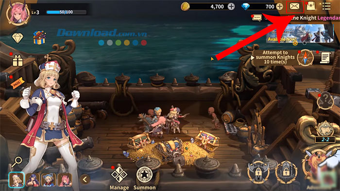 Bước 4: Quay trở lại trò chơi và nhấn vào biểu tượng phong bì thư ở góc trên cùng bên phải.