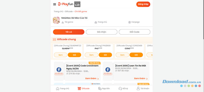Bước 1: Truy cập trang web https://playfun.vn/giftcode/be-meo-cua-toi và đăng nhập vào tài khoản Playfun.