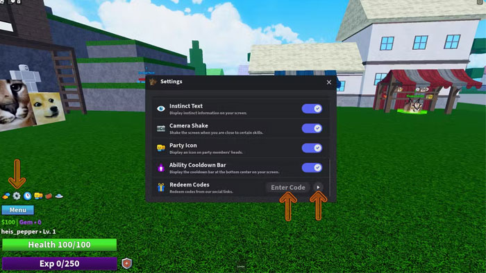 Thao tác nhập code Meme Sea rất đơn giản, tương tự các game Roblox khác, với các bước như sau: