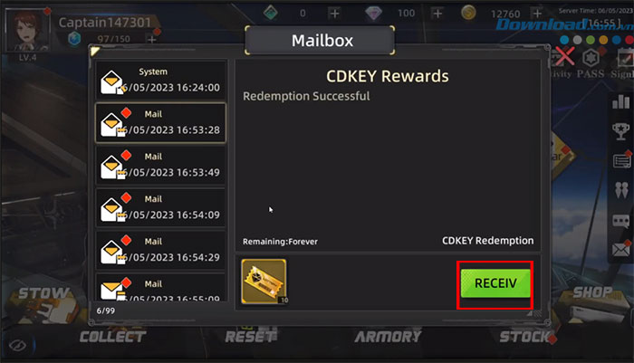 Bước 4: Quay trở lại giao diện chính của trò chơi và mở Mailbox để thu thập phần thưởng.