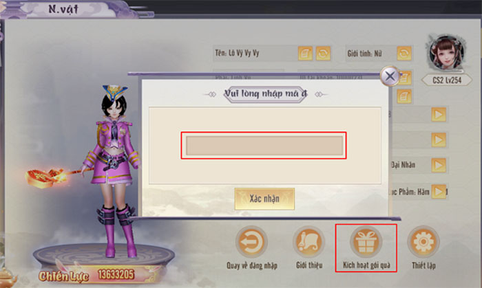Bước 2: Trong menu Nhân vật, chọn Kích hoạt gói quà.