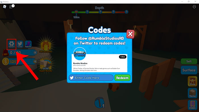 Thao tác nhập code Mining Simulator 2 rất đơn giản, tương tự các game Roblox khác, với các bước như sau: