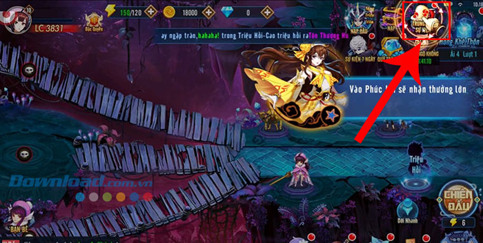 Bước 1: Mở Mộng Thiên Tử trên thiết bị và nhấn vào Trung tâm sự kiện ở góc trên bên phải của giao diện chính.
