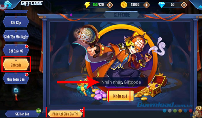 Bước 2: Chọn tab Phúc lợi siêu giá trị và nhấn vào mục Giftcode.
