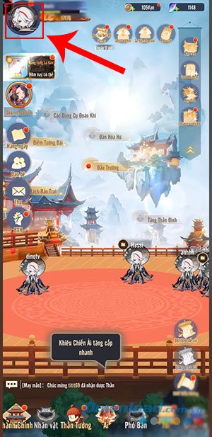 Bước 1: Mở Monkey King: Đại Chiến Tây Du trên thiết bị và nhấn vào biểu tượng avatar nhân vật ở góc trên cùng bên trái của giao diện chính.