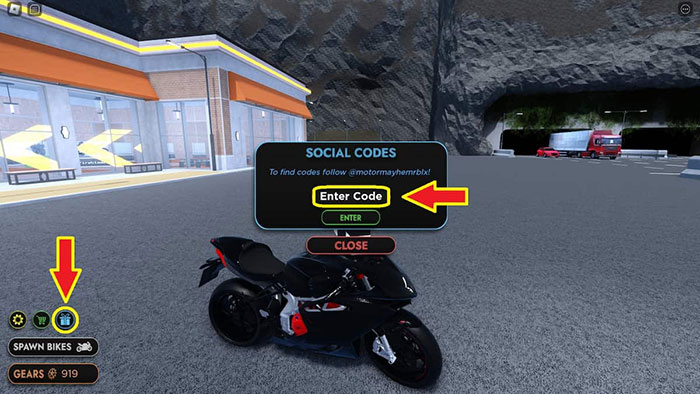 Thao tác nhập code trong Motorcycle Mayhem rất đơn giản, tương tự như các trò chơi Roblox khác, với các bước dưới đây: