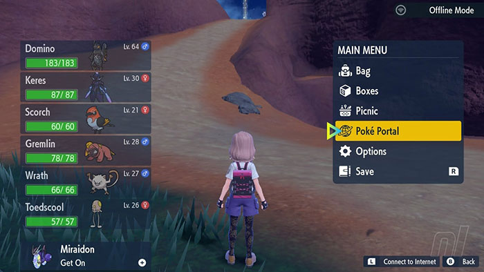 Bước 1: Khởi chạy Pokémon Scarlet and Violet và mở menu trò chơi bằng cách nhấn X, sau đó chọn Poke Portal trên menu bên phải.