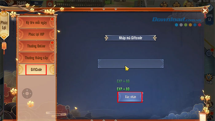 Bước 2: Truy cập tab Giftcode. Nhập chính xác hoặc sao chép mã code được cung cấp ở phía trên vào ô trống và nhấn nút Xác nhận để thu thập để thu thập phần thưởng tương ứng.