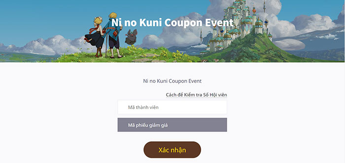Bước 2: Nhập Mã thành viên và Mã phiếu giảm giá (mã code được cung cấp ở phía trên. Sau đó nhấn nút Xác nhận.