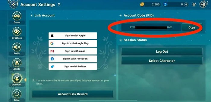 Nhấn tab Account về phía dưới cùng, sau đó người chơi sẽ thấy Mã tài khoản của mình ở bên phải. Đó là một con số dài, vì vậy hãy đảm bảo nhập chính xác nó vào trang web quy đổi mã code.