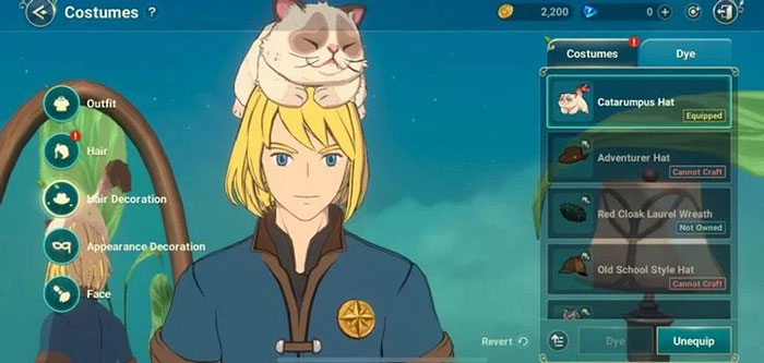 Những thứ như mũ sẽ có sẵn trong menu Outfit và phần còn lại sẽ có trong các phần tương ứng của chúng.