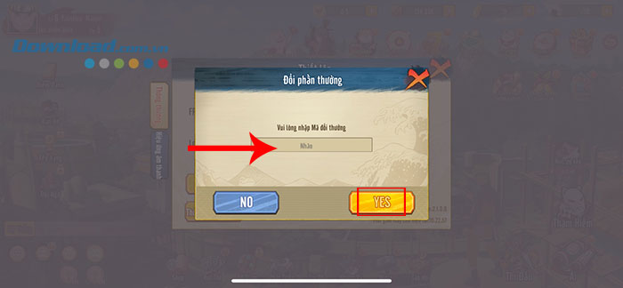 Bước 3: Nhập chính xác hoặc sao chép mã code được cung cấp ở phía trên và dán vào ô trống. Sau đó, bấm nút Yes để xác nhận dùng code.