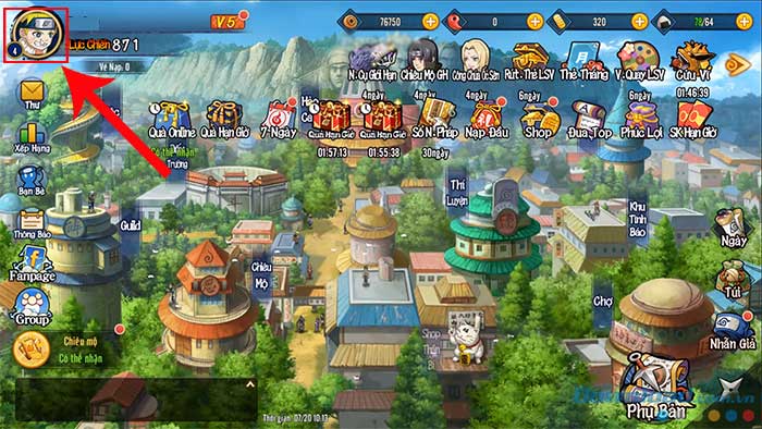 Bước 1: Mở Ninja Đại Chiến trên thiết bị và nhấn vào biểu tượng avatar nhân vật ở góc trên cùng bên trái.