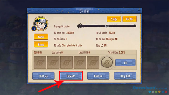 Bước 2: Nhấn vào nút Giftcode trong cửa sổ Cá nhân.
